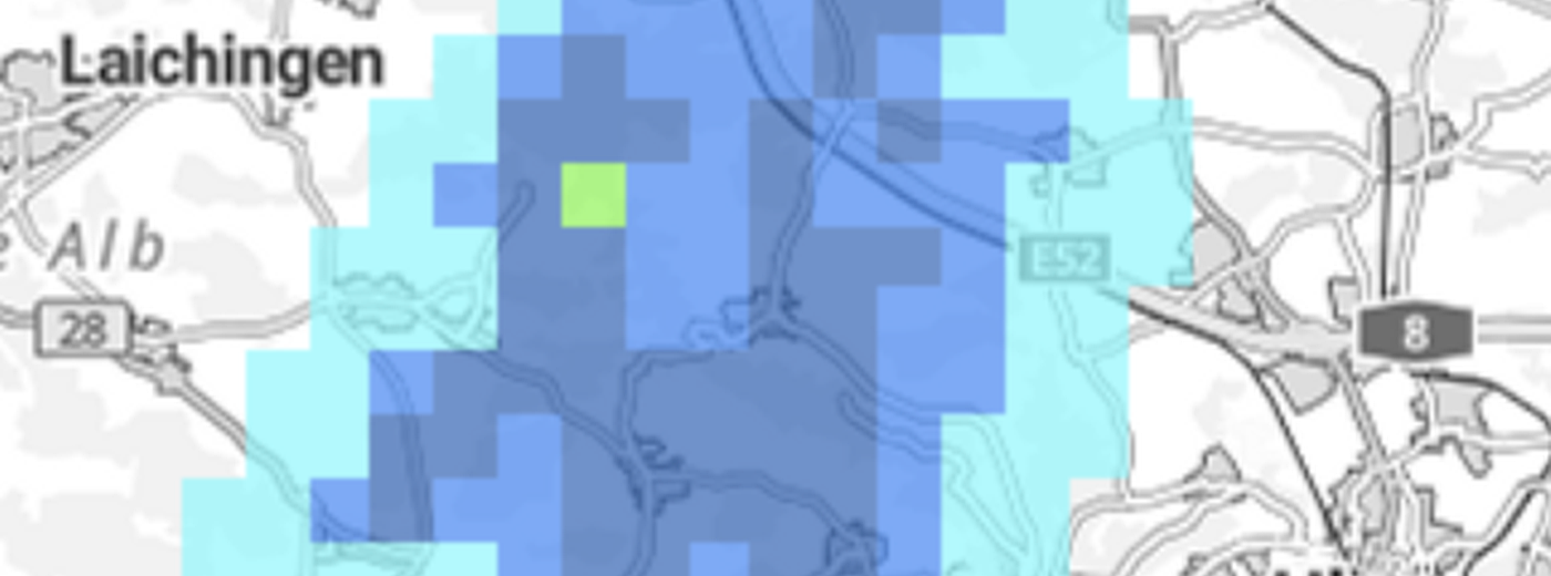 Point rainfall, local radar, and forecast layers combined into the same municipal warning logic. Punktniederschlag, lokales Radar und Prognose-Layer in derselben kommunalen Warnlogik.